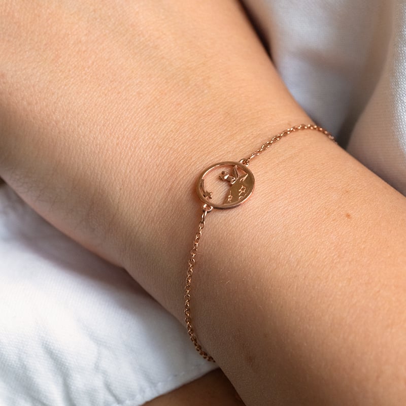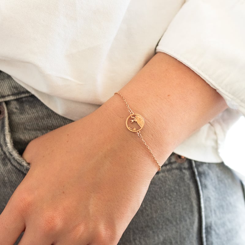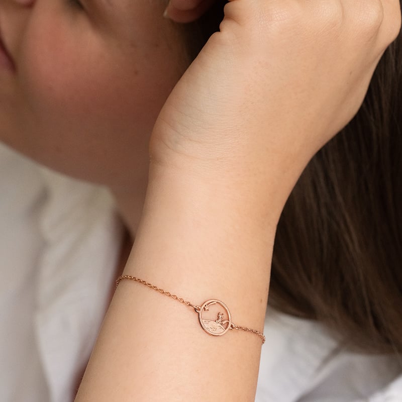 • niedliches und doch elegantes Armband aus Gold oder Platin mit einem Motiv aus der Geschichte des Kleinen Prinzen - ein Fuchs, der den Nachthimmel betrachtet
