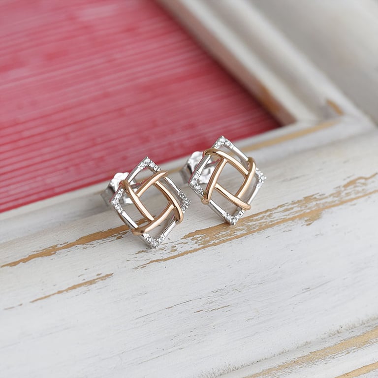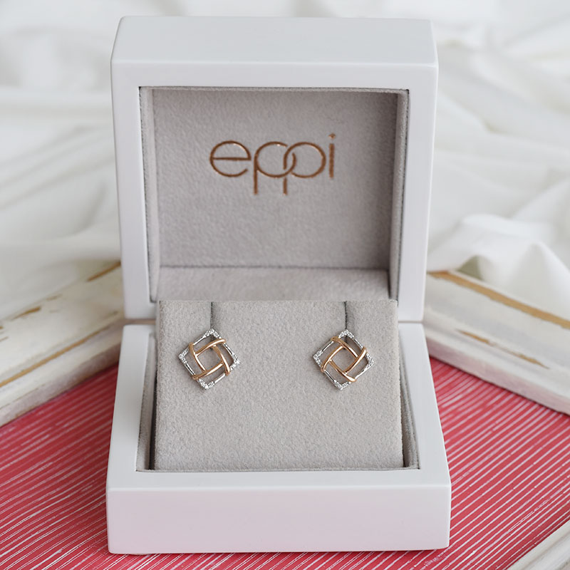 • luxuriöse, moderne Ohrstecker mit Bimetalleffekt und Diamanten