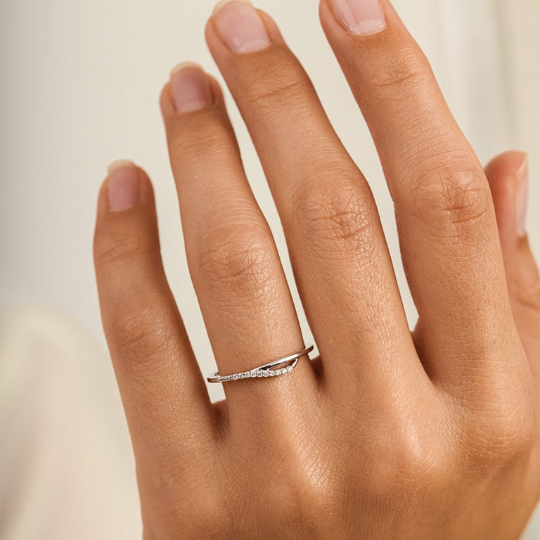 • das ungewöhnliche Design des Schmuckstücks wird durch 10 runde Diamanten ergänzt