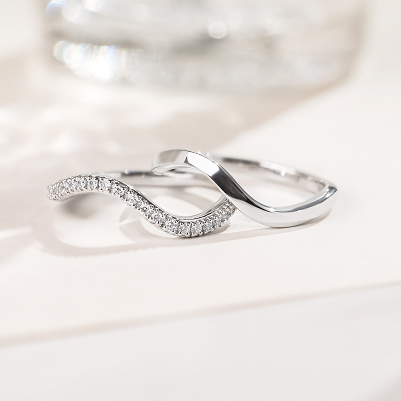 • ein außergewöhnlicher Ring mit einer wellenförmigen Form, die sich durch eine feine Bewegung der Linien auszeichnet