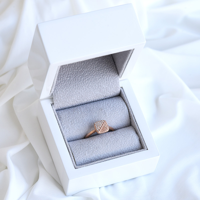 • die effektvolle Pavé-Fassung, die scheinbare Asymmetrie und die originelle viereckige Form machen diesen Schmuck zu einem unikaten Accessoire