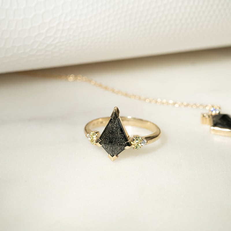 • Ring mit einem schwarzen Edelstein in Form eines Drachens (Kite Form)