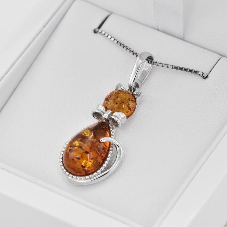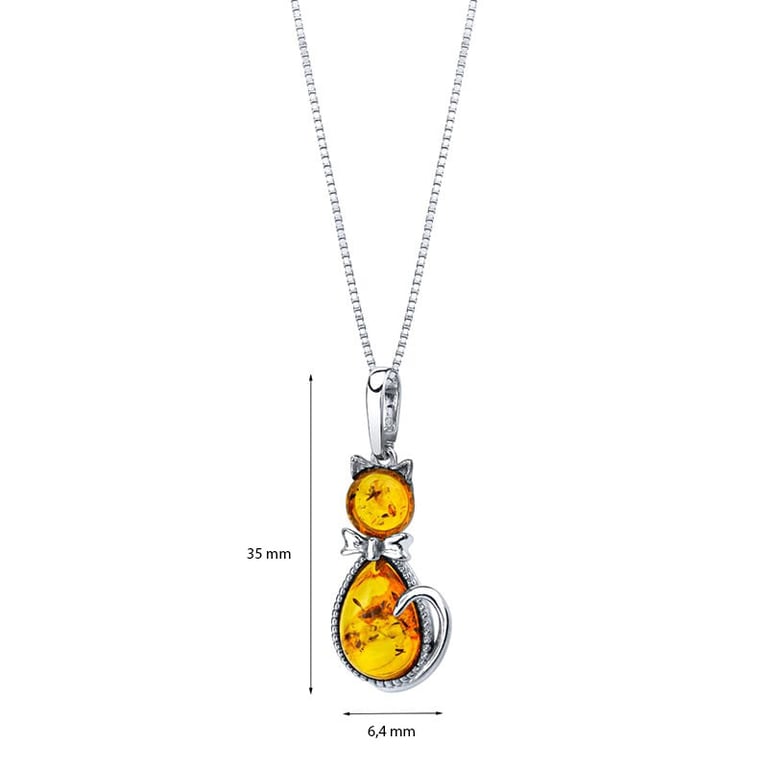 Bernstein Kätzchen im silbernen Anhänger Meow