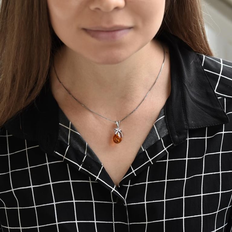 Bernsteinanhänger aus Silber mit Schleife Hanny