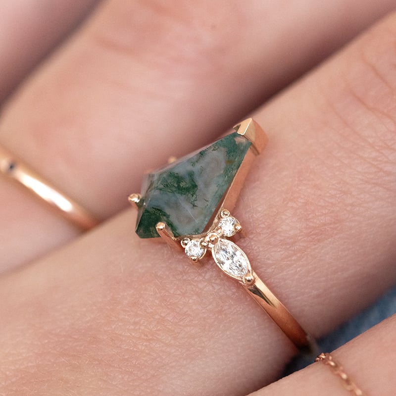 • Ring aus recyceltem Gold mit einem Edelstein in Kite-Form