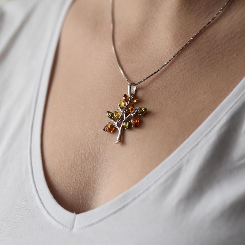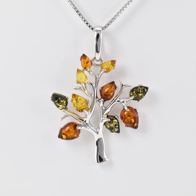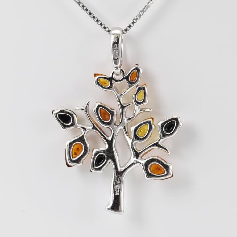Bezaubernder Silber-Anhänger mit Lebensbaum und Bernstein Tess