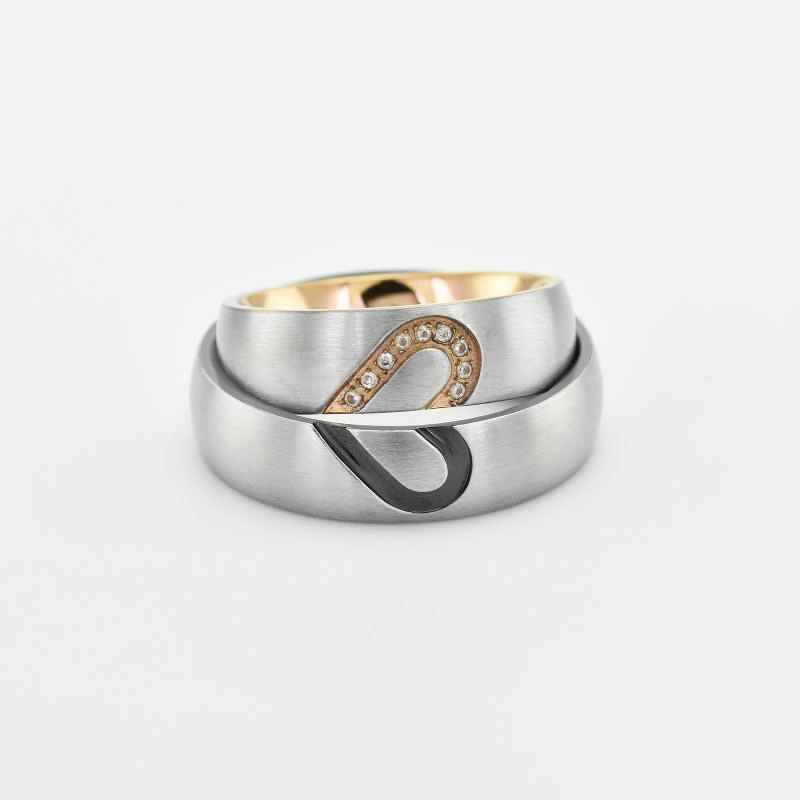 • Ringe aus andersfarbigem Gold, die zusammen mit einem Herz verziert sind
