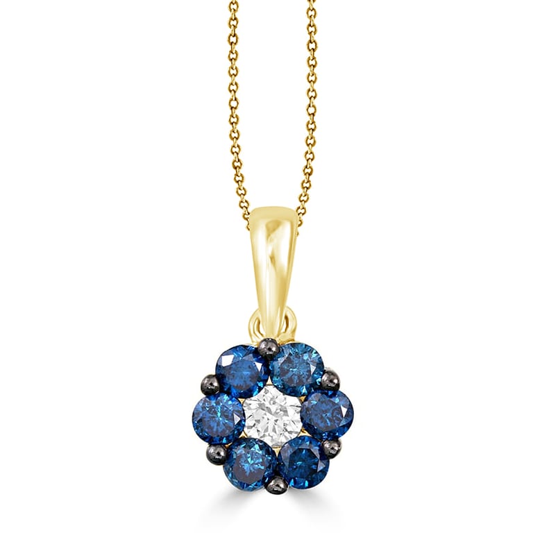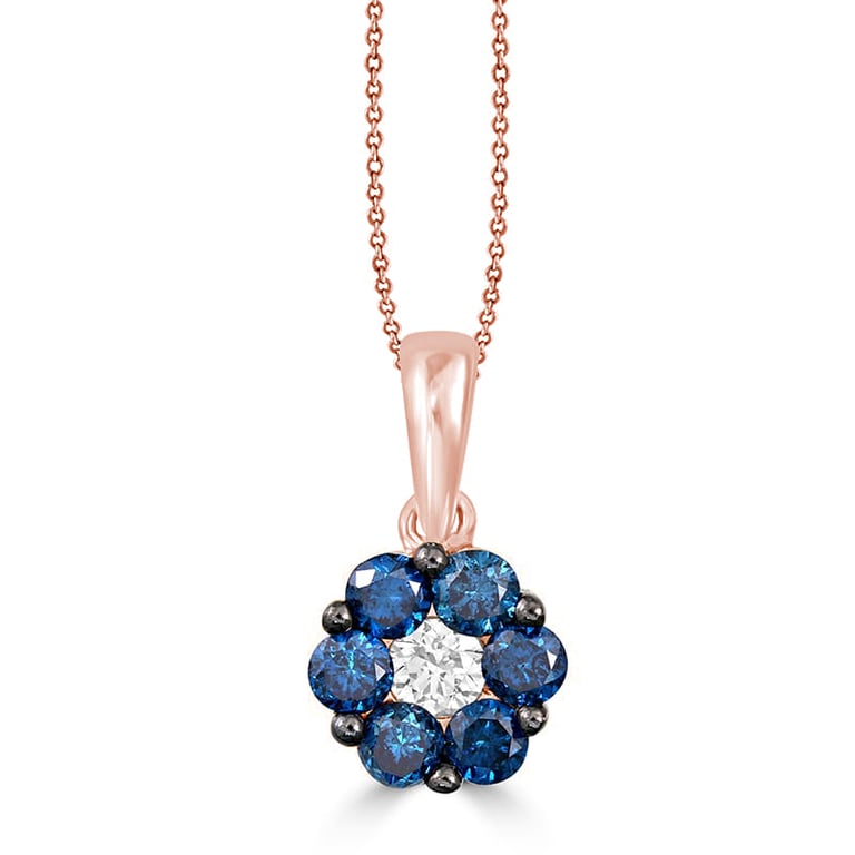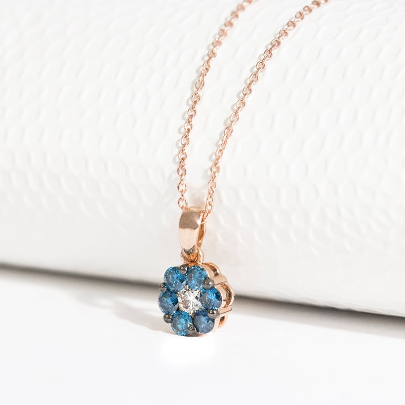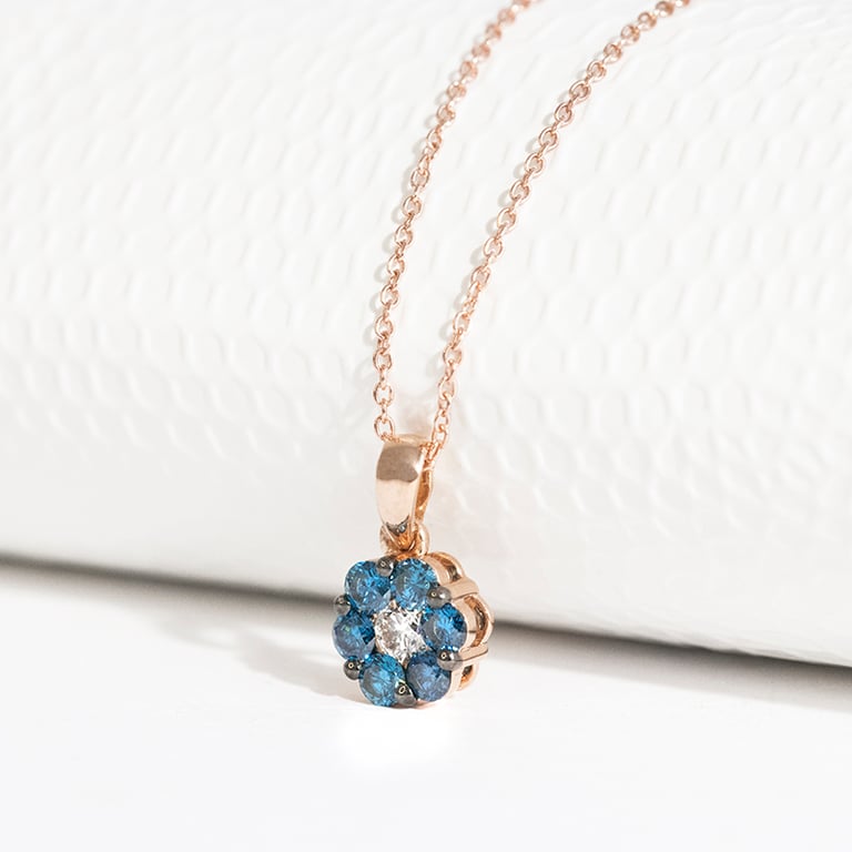 Blaue Diamanten im Anhänger in Blumenform Shayne