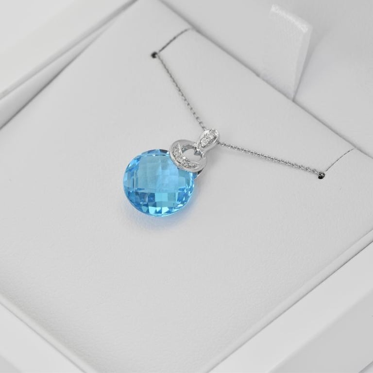 • der Anhänger mit strahlend blauem Topas ist für alle, die ausdrucksstarke Accessoires bevorzugen