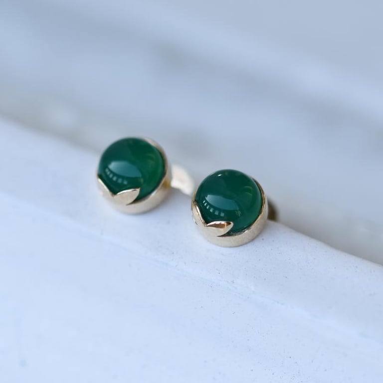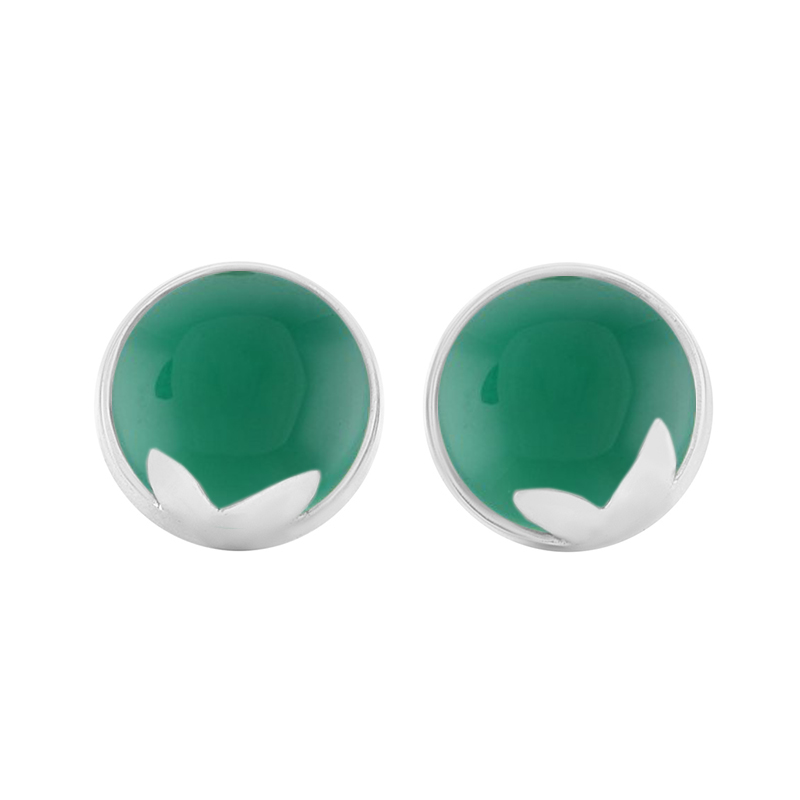 Blumen-Ohrringe aus Gold 585 mit grünen Cabochon Onyxen Erica
