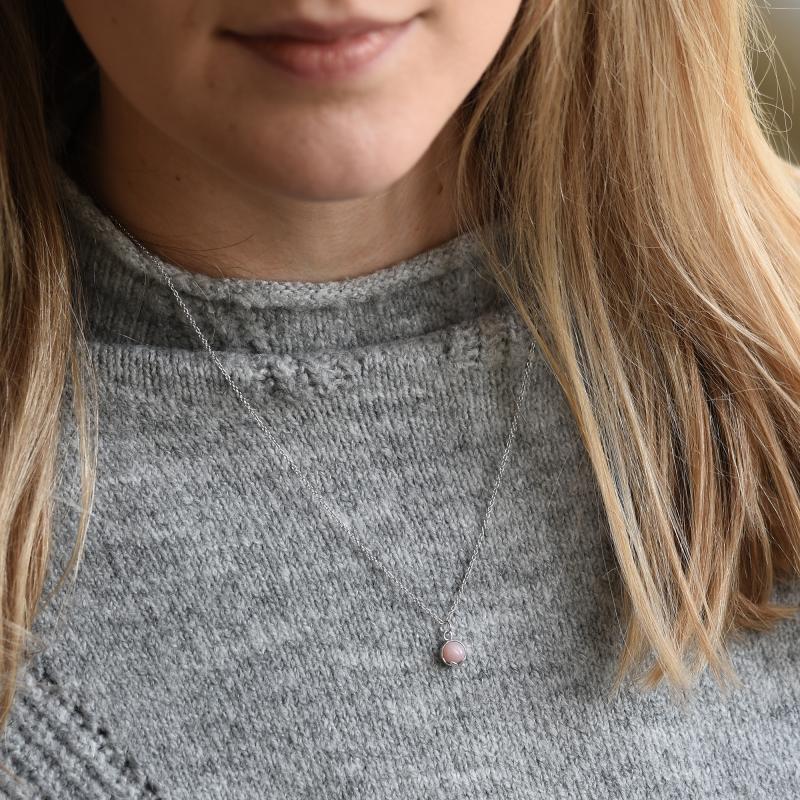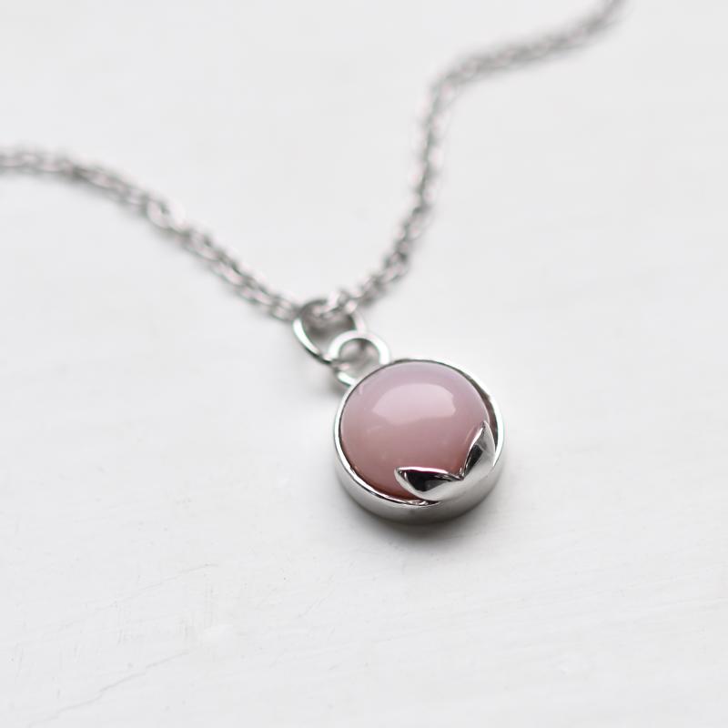 • der Anhänger mit einem rosa Cabochon Opal ist sanft aber auch stark