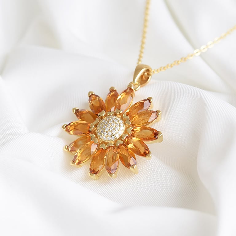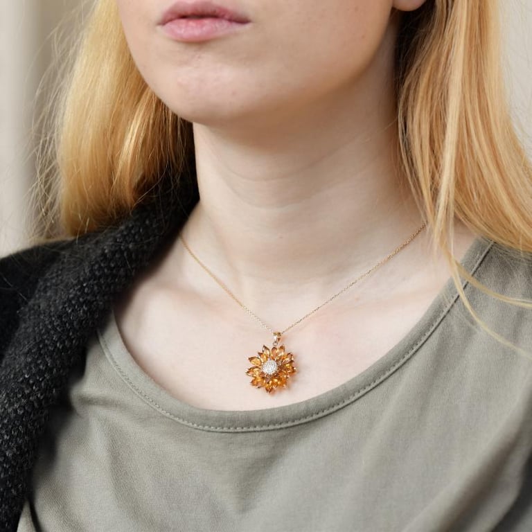 • die Blume aus gelben Citrinen wird wundervoll an Ihrem Hals strahlen