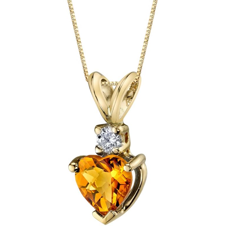 Citrinherz in goldener Halskette mit Diamant Dorevie