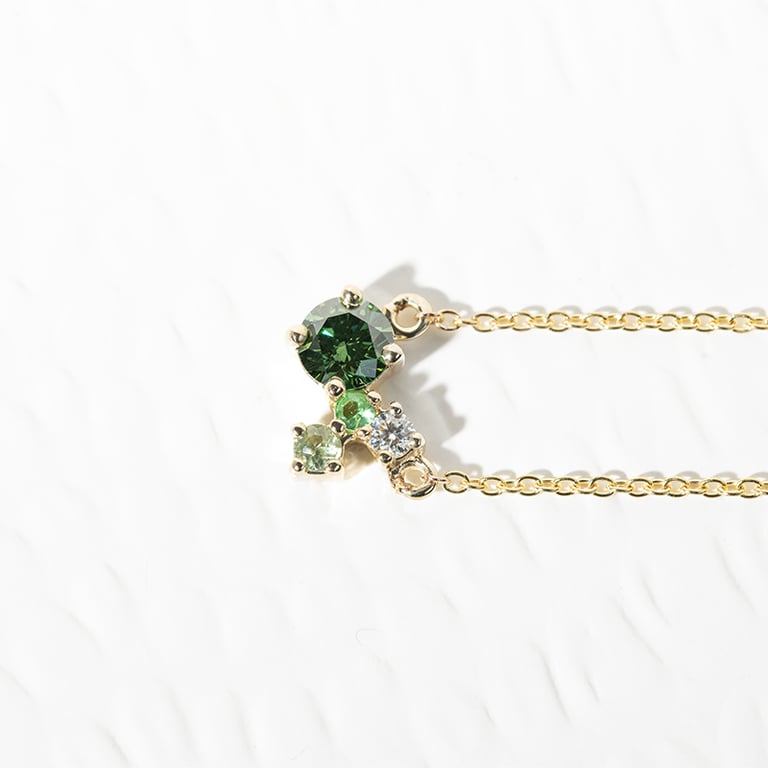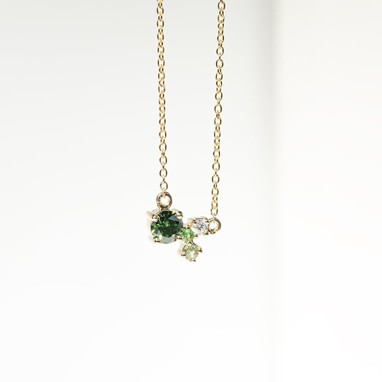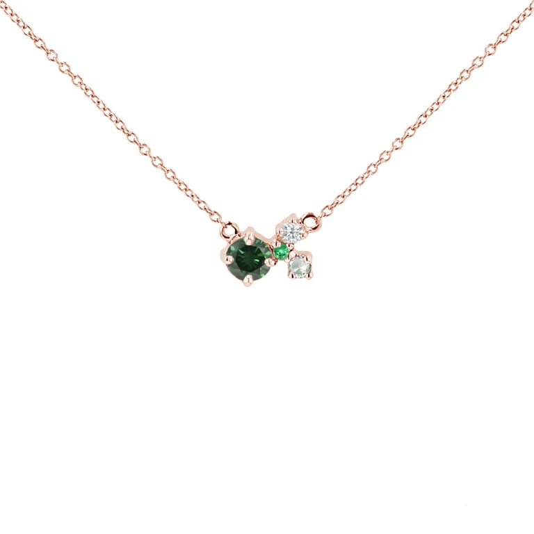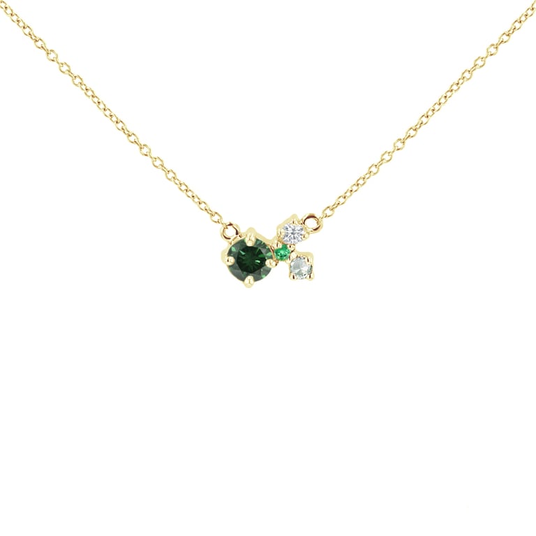 Cluster Halskette mit grünem Diamanten und Edelsteinen Millie