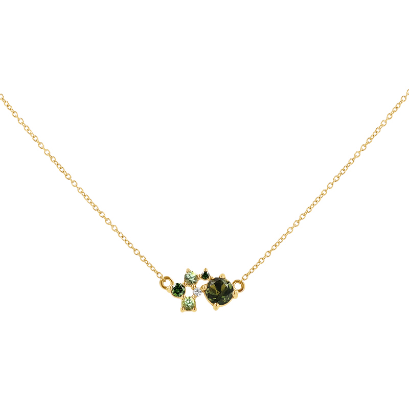 Cluster Halskette mit Moldaviten, Saphiren und Diamanten Otyl