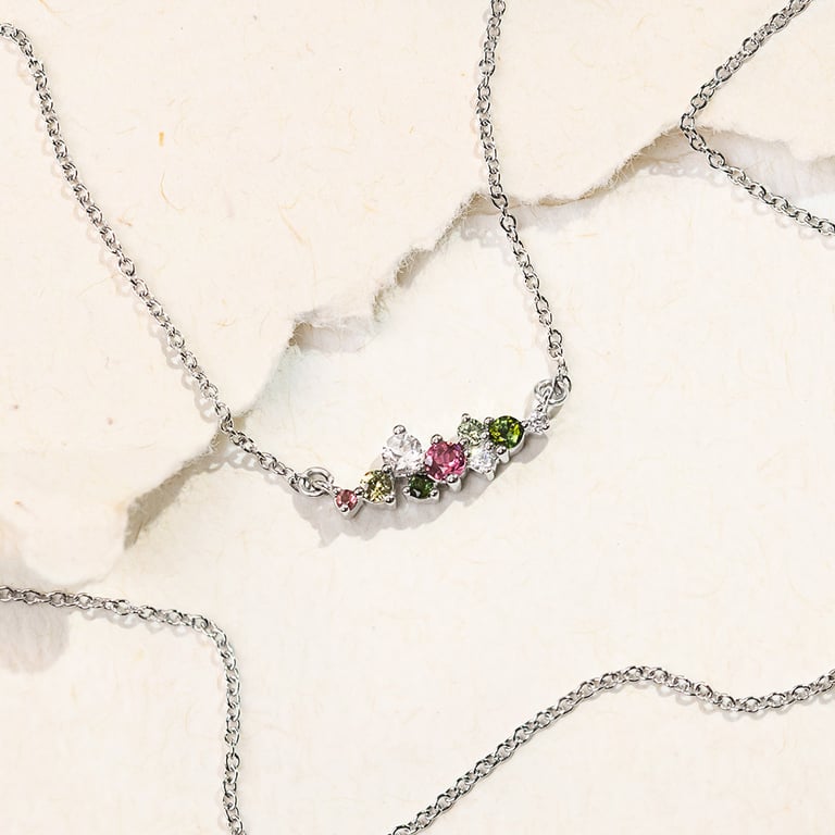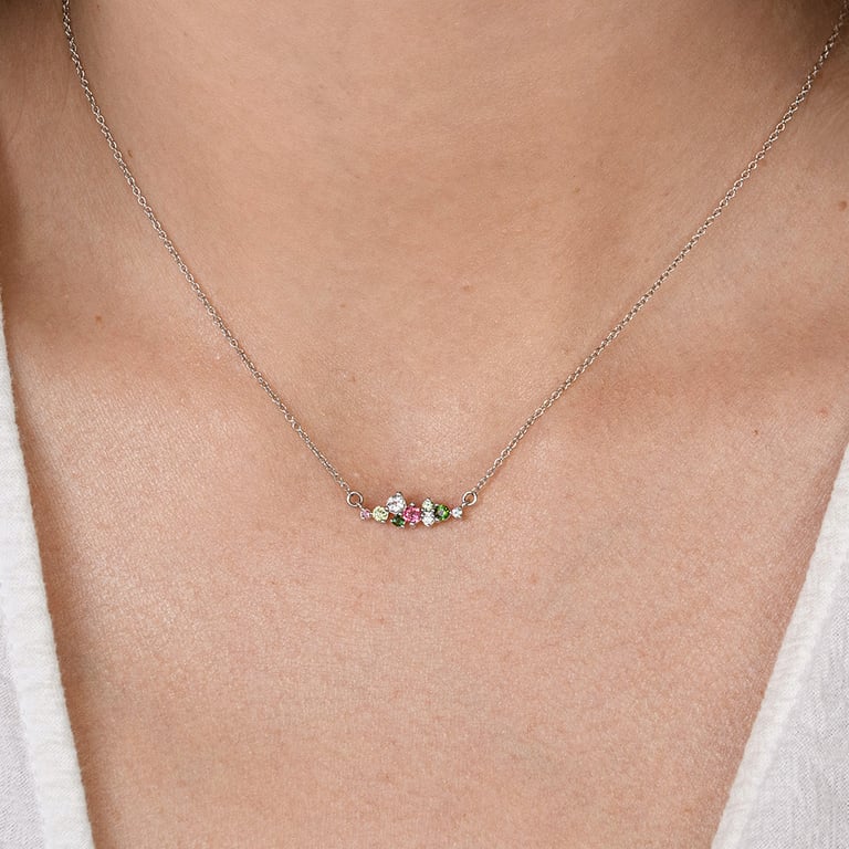 Cluster Halskette mit pastellfarbenen Edelsteinen Kianna