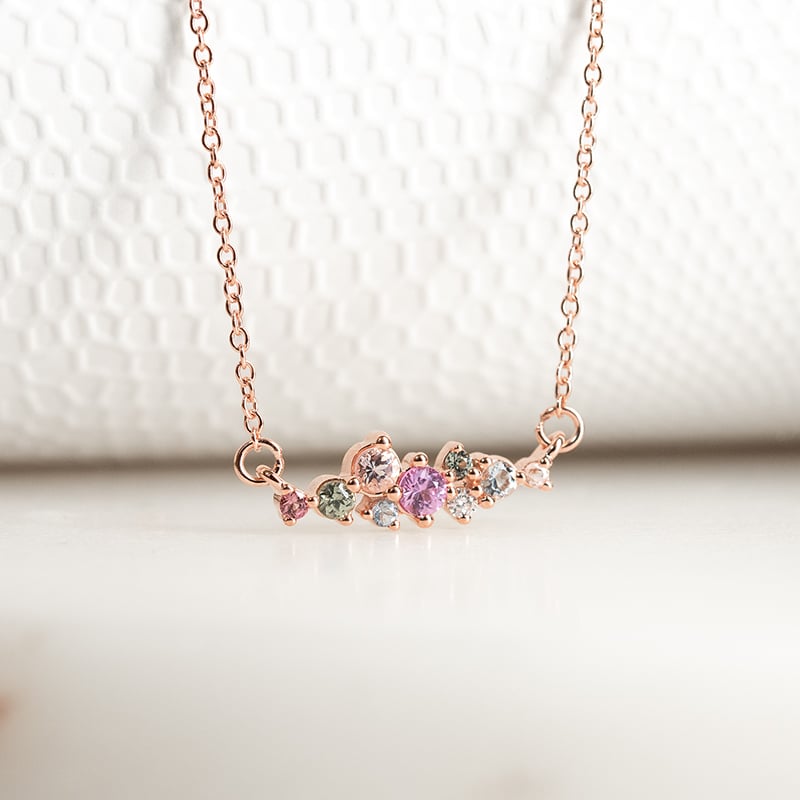 • diese Halskette ist mit einem hübschen Cluster aus neun natürlichen Edelsteinen verziert
