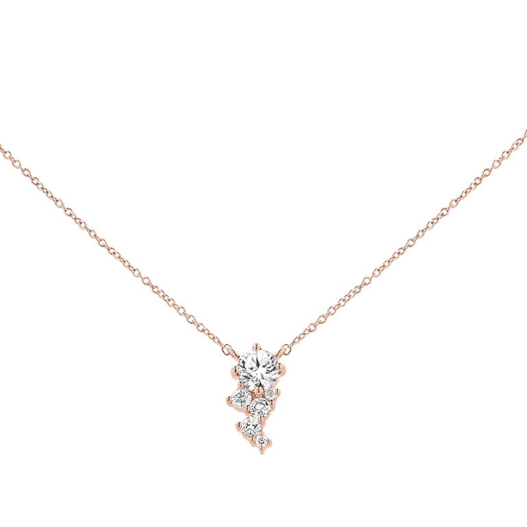 • Halskette mit einem zentralen, im Labor geschaffenen Diamanten und kleineren an der Seite