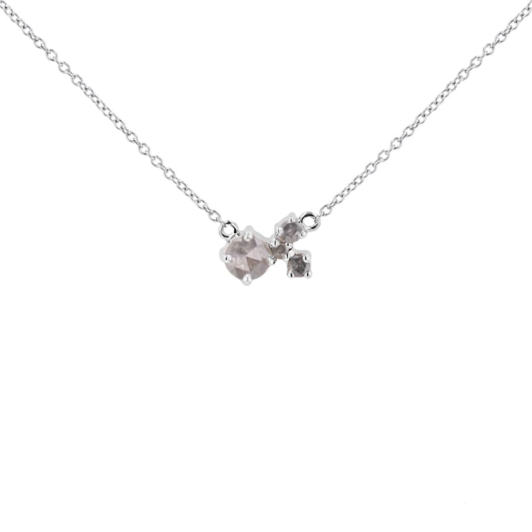 • vier einzigartige Salt and Pepper Diamanten in einer Kette aus recyceltem Gold