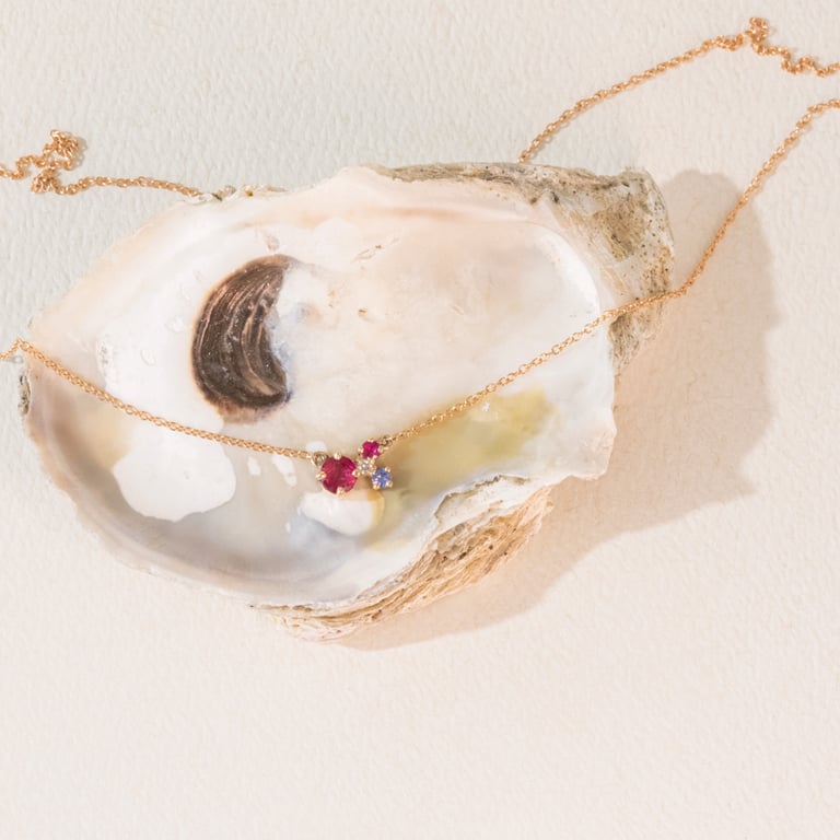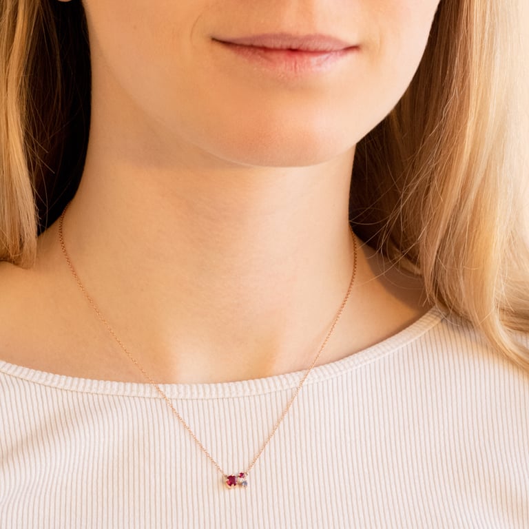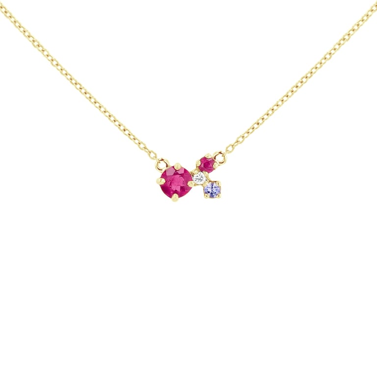Cluster-Kette mit Turmalin, Tansanit, Rubin und einem Diamanten Millie