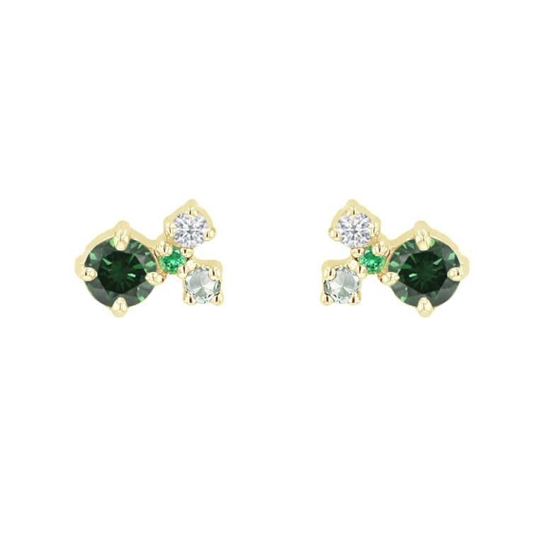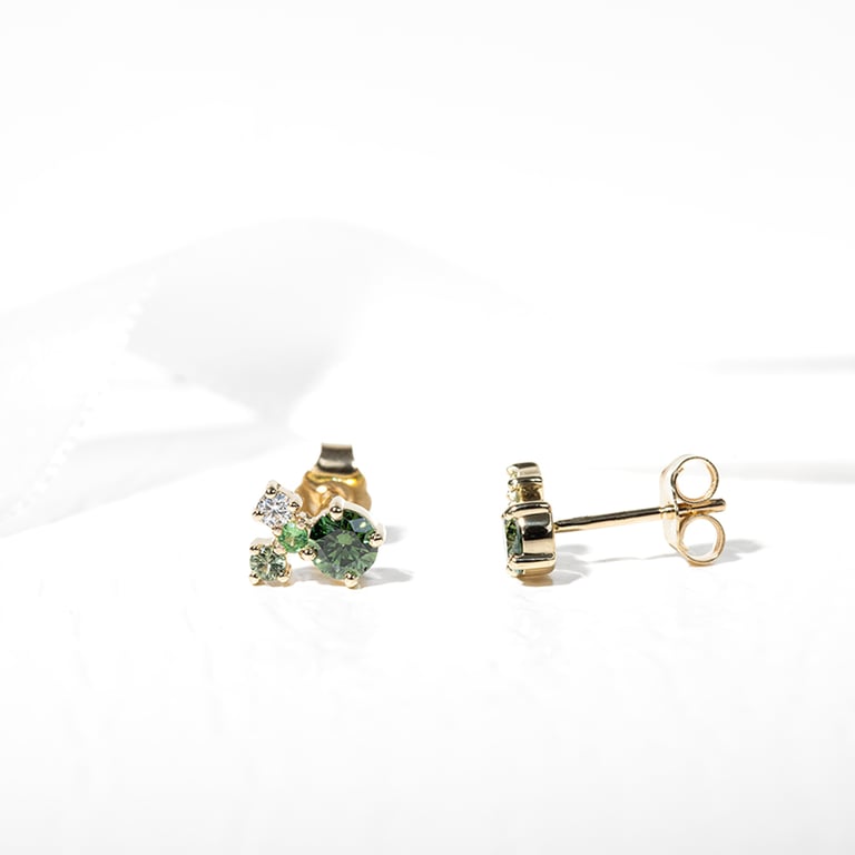 Cluster-Ohrringe mit grünen Diamanten, Saphiren, Tsavorit-Granaten und Moissaniten Kerrie