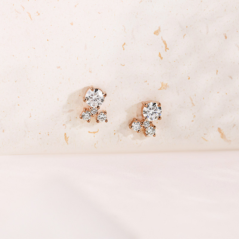 • jeder Ohrring ist mit einem organischen Cluster aus Moissaniten und drei Lab Grown Diamanten verziert