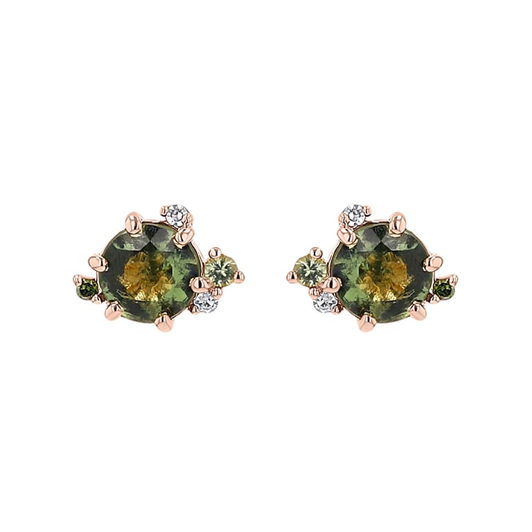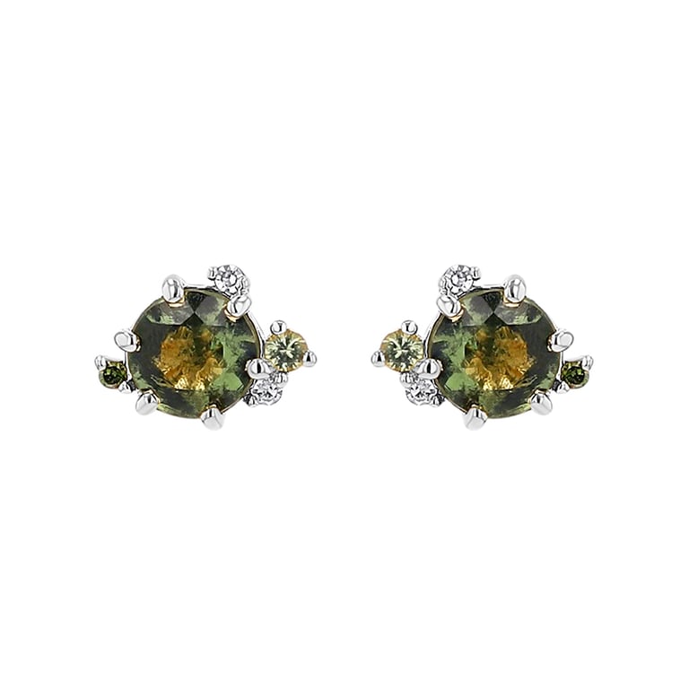 Cluster Ohrringe mit Moldavit, Saphir und Diamanten Alary