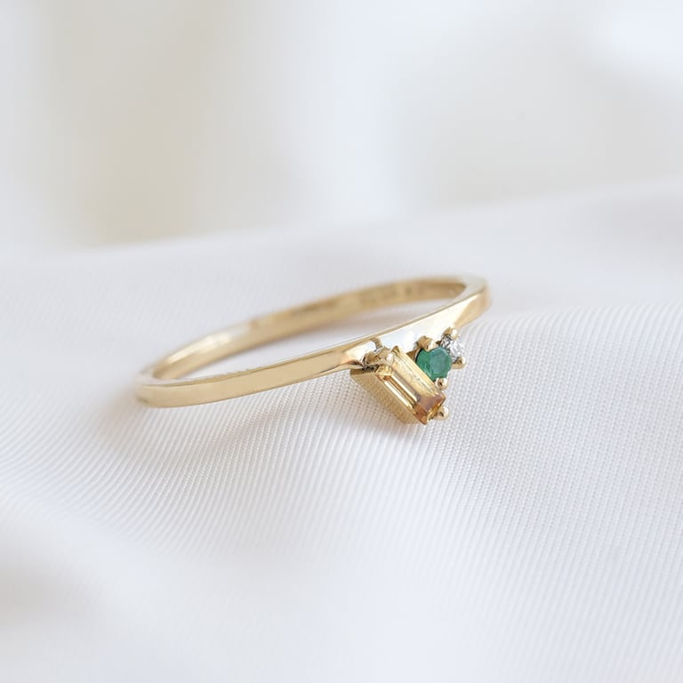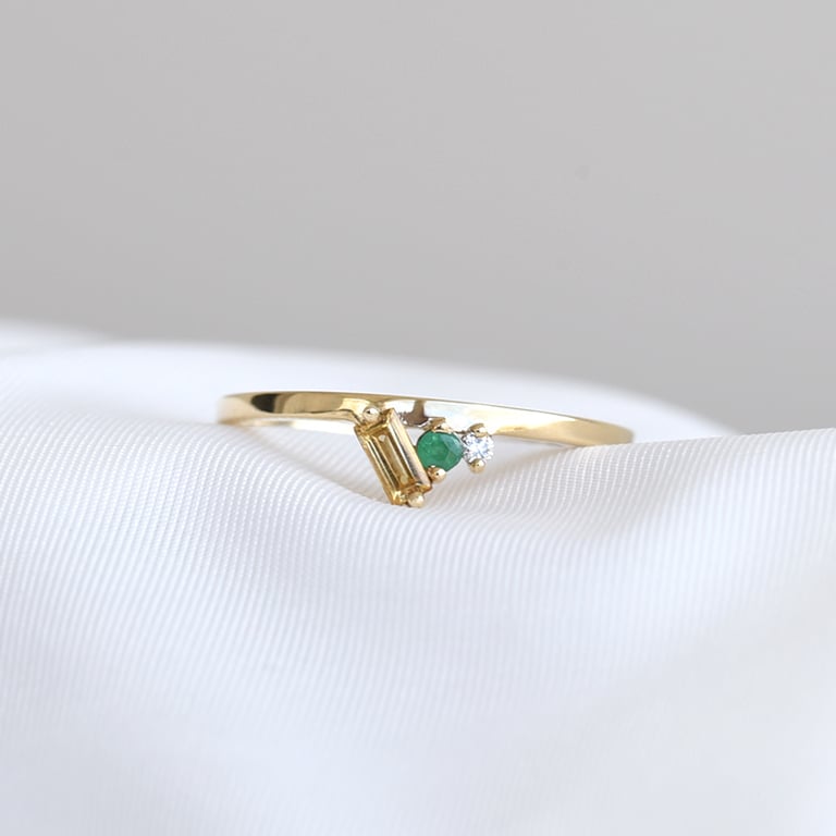 Cluster-Ring aus Gold mit Citrin, Smaragd und einem Diamanten Dalit