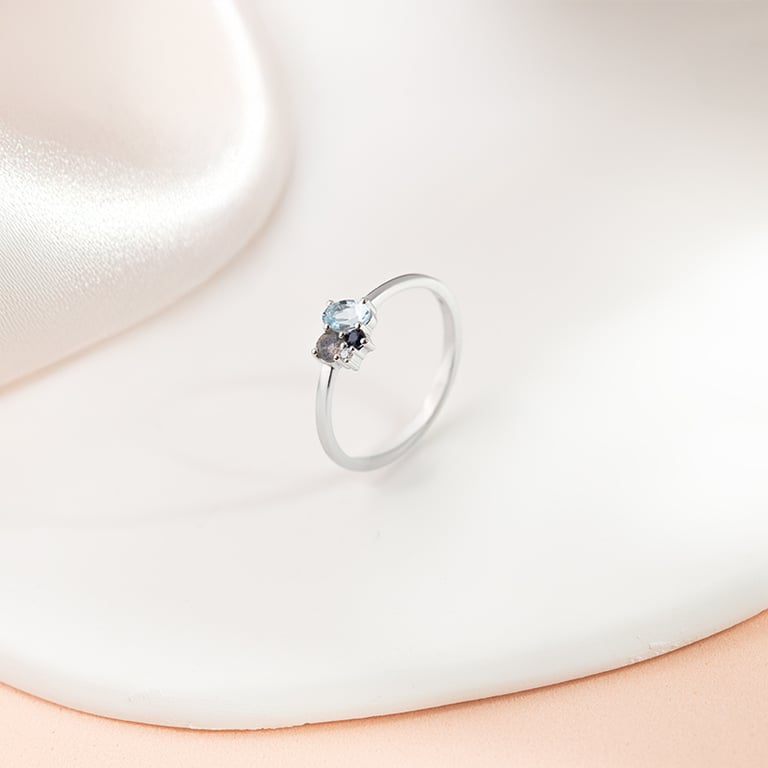 Cluster-Ring mit Aquamarin, Labradorit, Saphir und Diamant Bluma