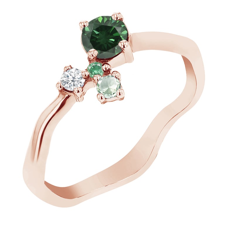 Cluster Ring mit grünem Diamanten und Edelsteinen Roche