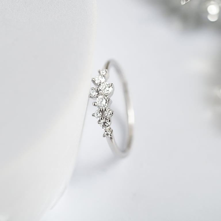 • ein zartes Modell, das mit neun Lab Grown Diamanten im Cluster-Stil verziert ist