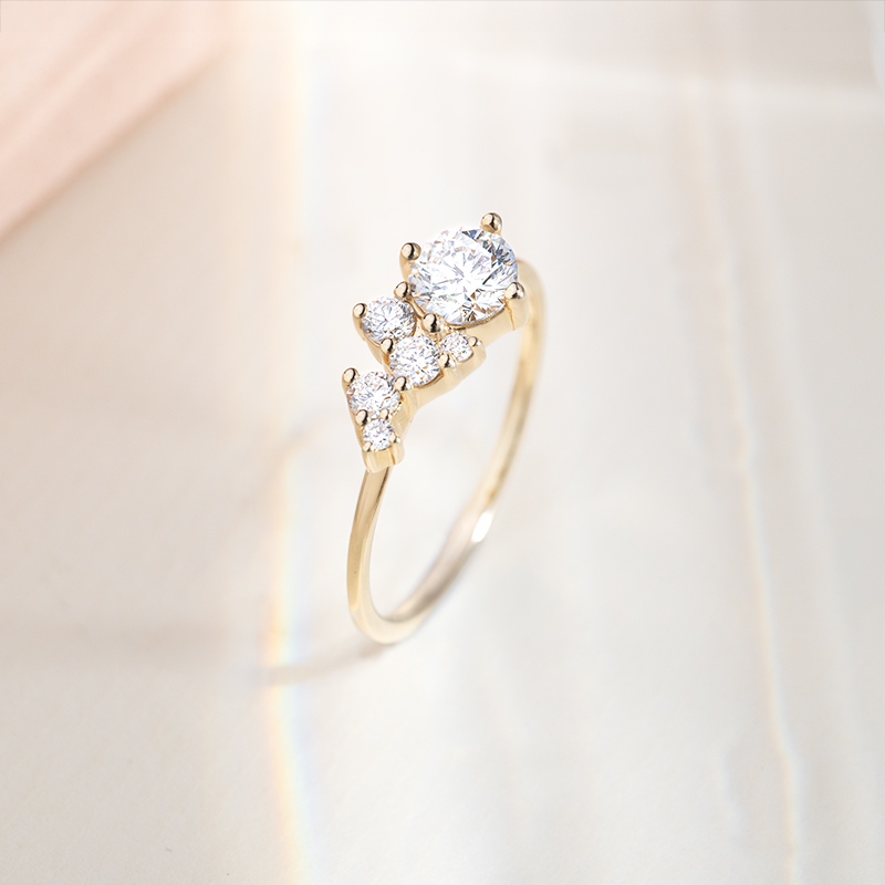 • Ring mit einer funkelnden Traube (oder Cluster) besetzt