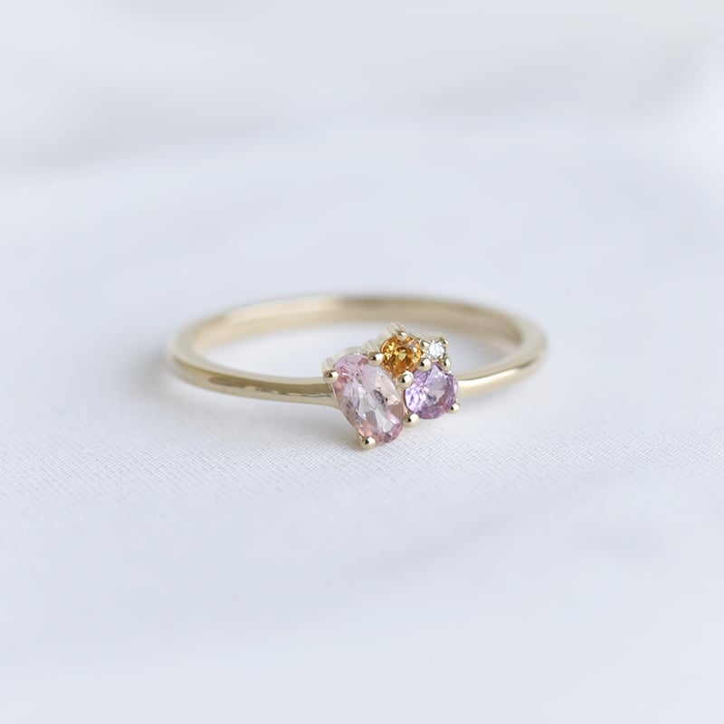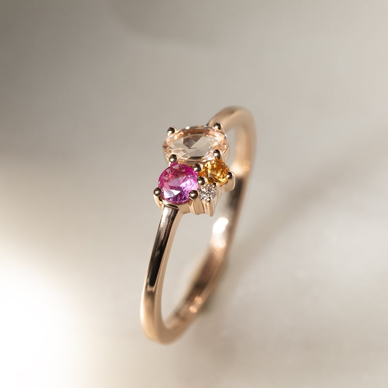 Cluster-Ring mit Morganit, Saphir, Citrin und Diamant Bluma