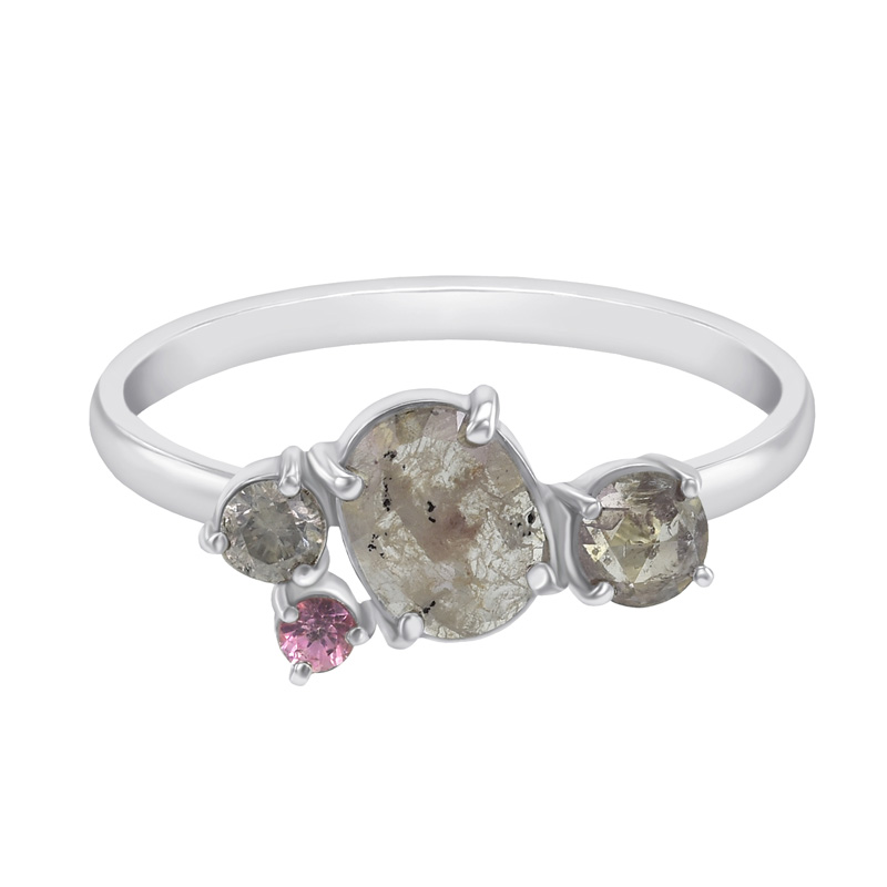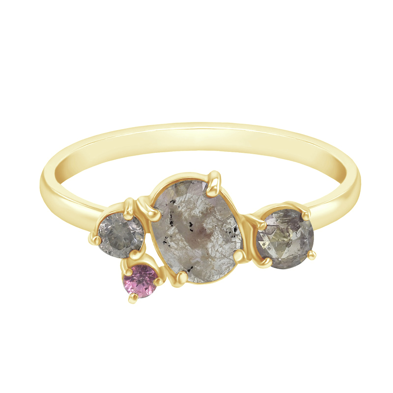 Cluster-Ring mit Salt and Pepper Diamanten und Saphir Gauma
