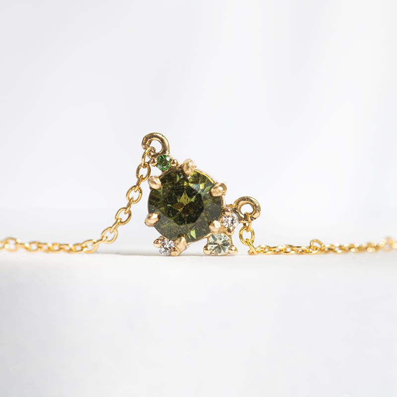 Cluster Halskette mit Moldaviten, Saphiren und Diamanten Otyl