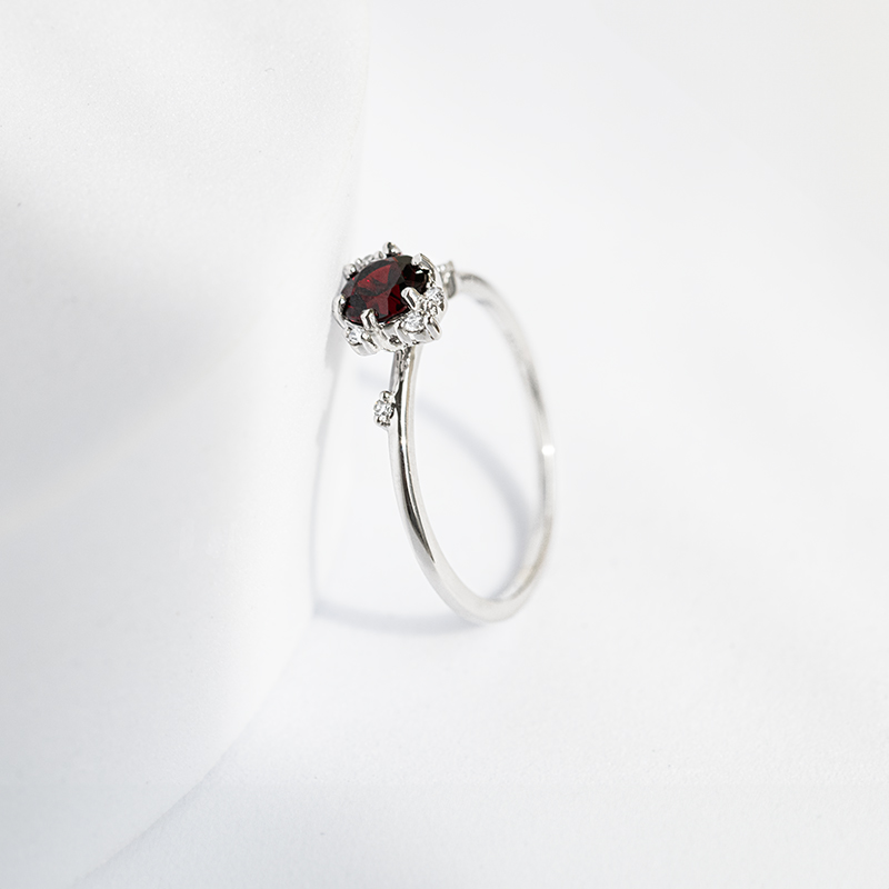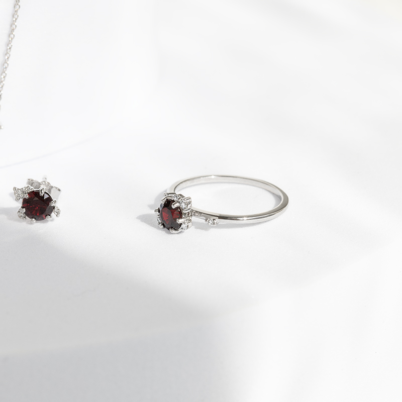 • ein Ring, der den modernen Cluster-Stil mit dem geschichtsträchtigen Symbol der tschechischen Nationalidentität - dem böhmischen Granat - verbindet