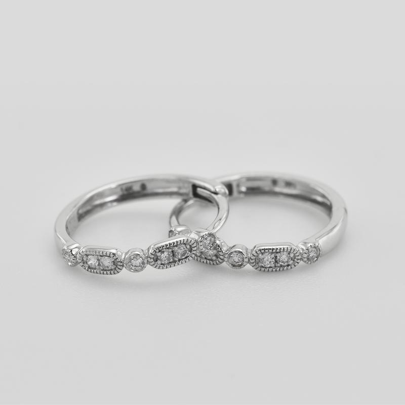 • in den Reif sind jeweils sieben weiße Diamanten in runden oder ovalen Lünetten gefasst