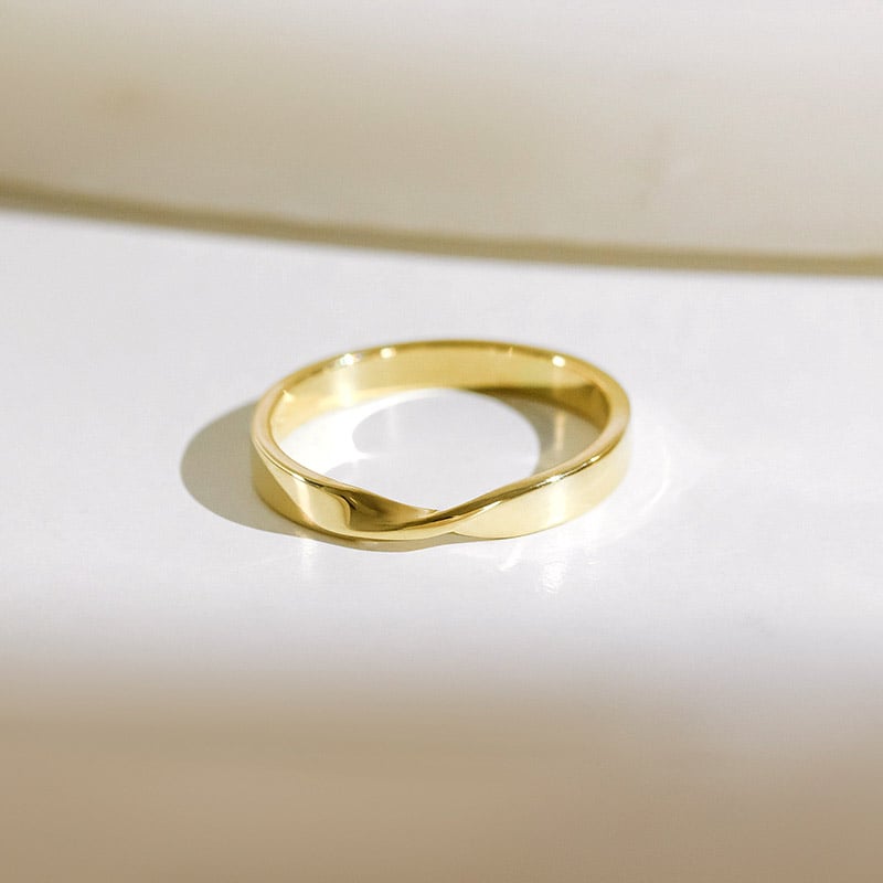 • ein schlichter Ring, der durch seine ausgefallene verdrehte V-Form bezaubert