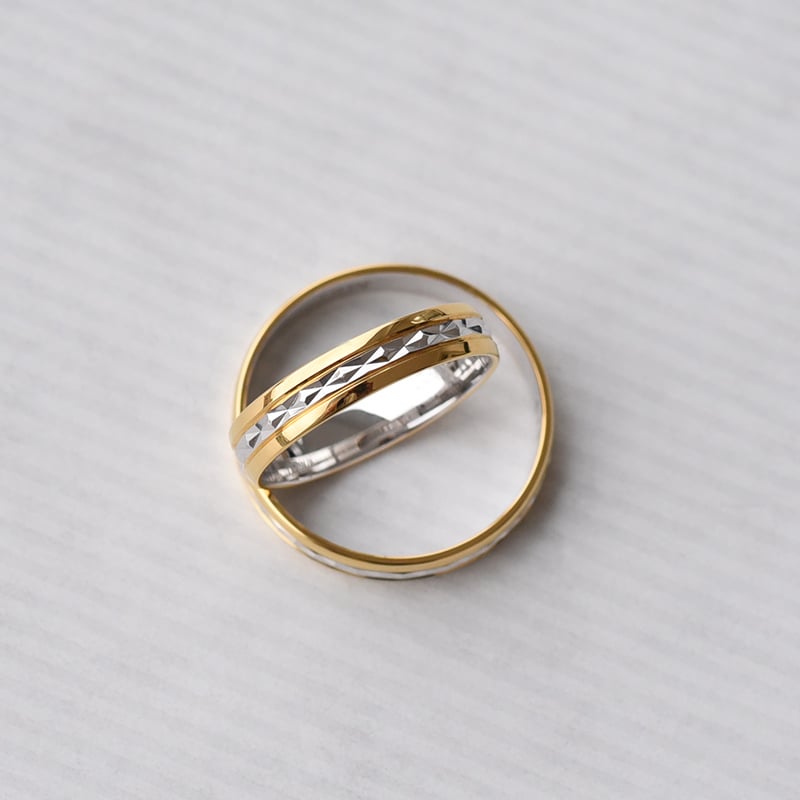 Dekorierte zweifarbige Eheringe aus Gold Karlis