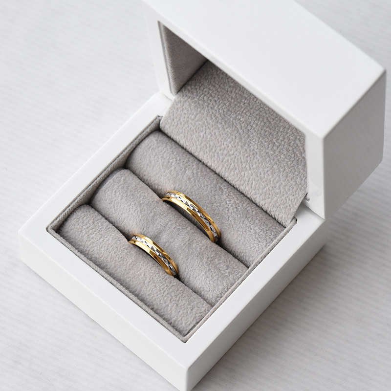 • die markanten zweifarbigen Eheringe sprechen Paare mit Sinn für Details an