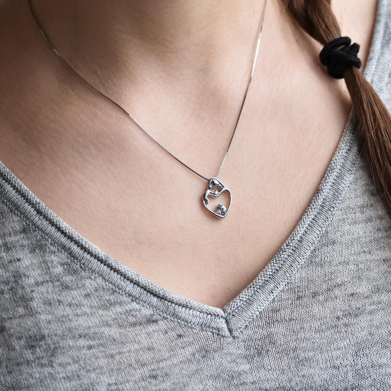 Silberner Anhänger Mutter und Kind mit Aquamarin und Diamant Ella