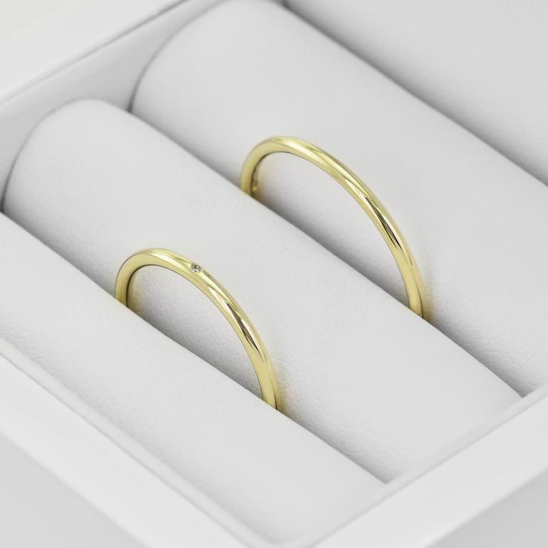 • Schlichte Eheringe aus Gold mit blauem Diamant Alays