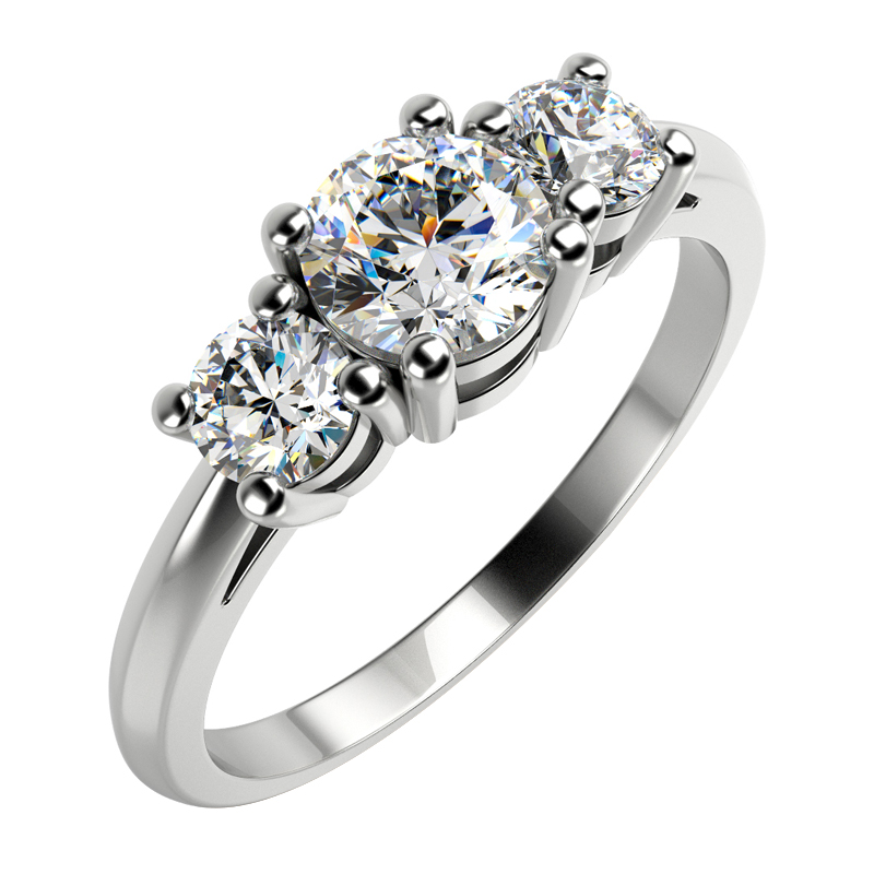 • die Kombination aus einem zentralen und zwei Seitendiamanten ist seit langem ein Klassiker