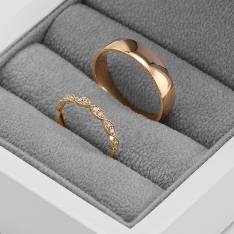 • bei diesen Trauringen im Vintage-Stil können Sie Ihren Lieblingsgoldton wählen