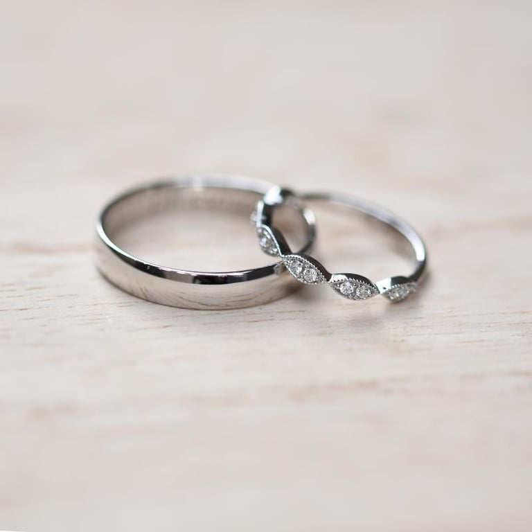 • der Herrenring ist minimalistisch und die Damenvariante ist mit Diamanten geschmückt