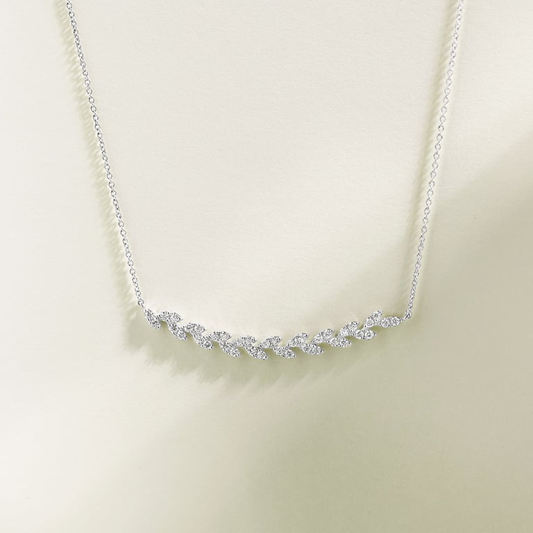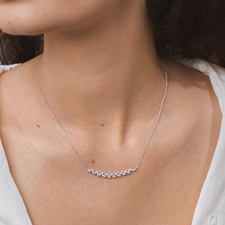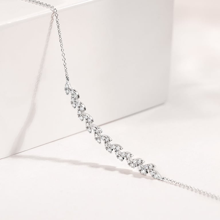 • die Kette ist mit Blättern verziert, die mit 38 natürlichen Diamanten besetzt sind