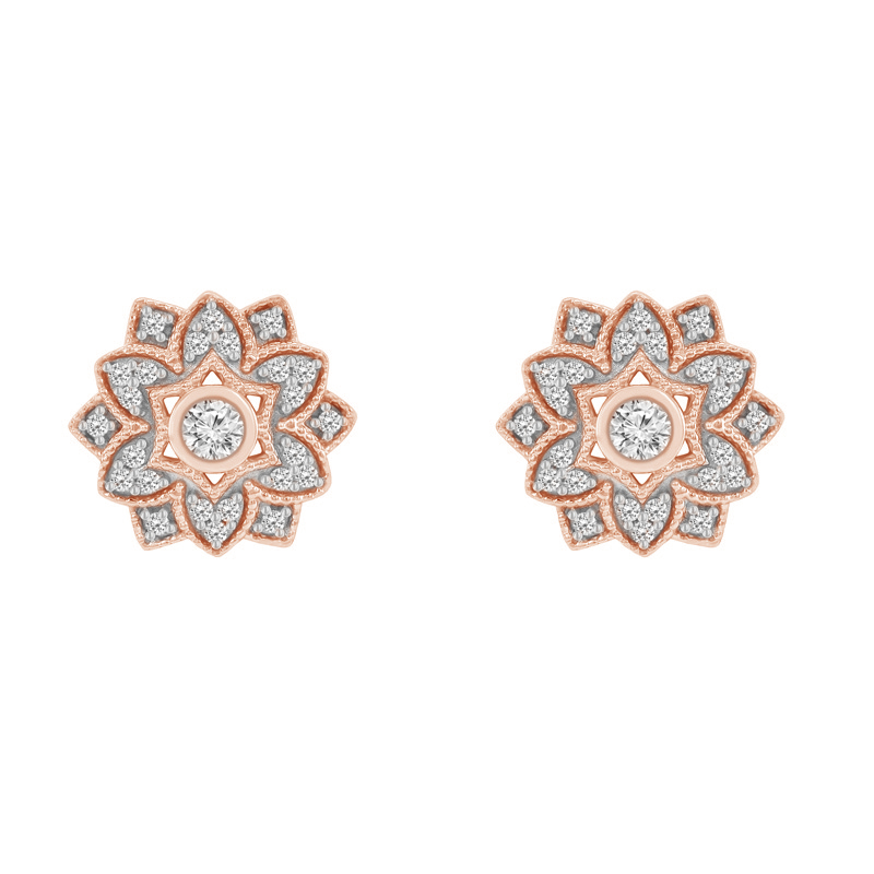 • genau so ein Juwel sind die goldenen Ohrringe in Form einer Blume mit glitzernden Diamanten