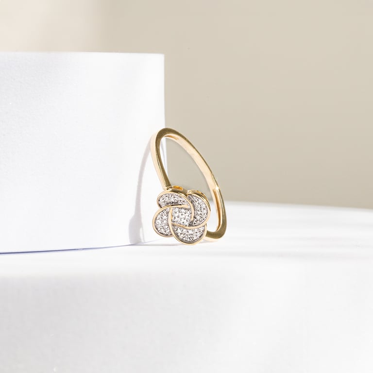 • die Pavé-Fassung schafft funkelnde Flächen, die von 585er Gold umgeben sind