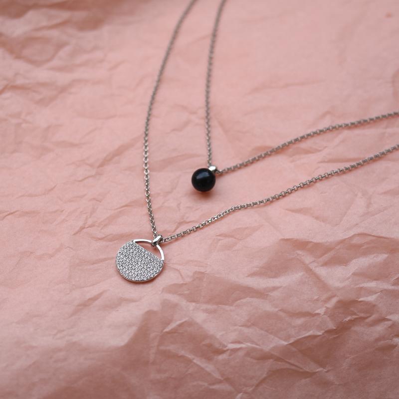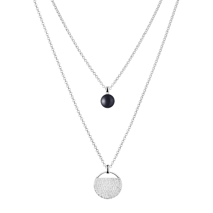 Doppel-Halskette aus Silber mit schwarzer Perle und Zirkonia Artis
