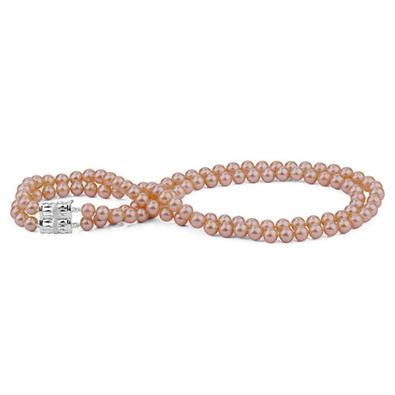 Doppelte Perlenkette mit 7-7.50mm pfirsichfarbenen Perlen Cyan